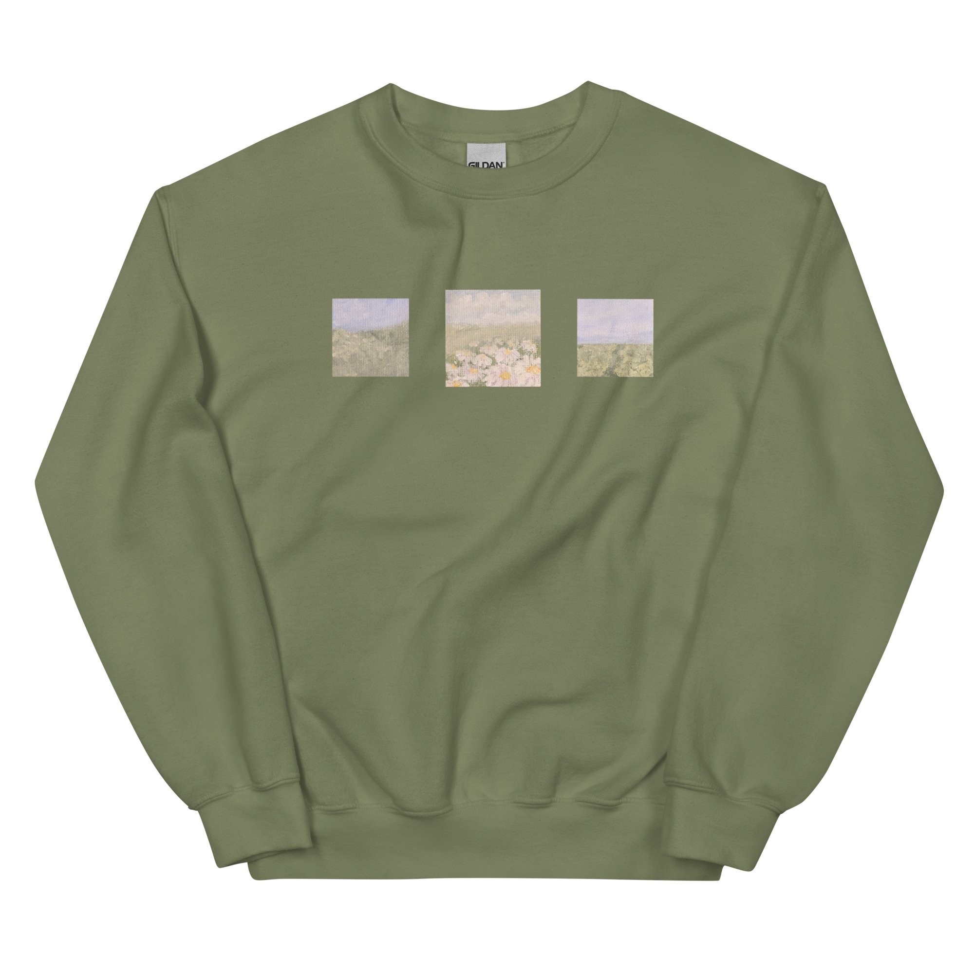 This cozy sweatshirt features three of my mini paintings originally painted on canvas. It's the perfect addition to your closet! It'll keep you warm in the chillier weather while reminding you of the sunnier days ahead⛅️